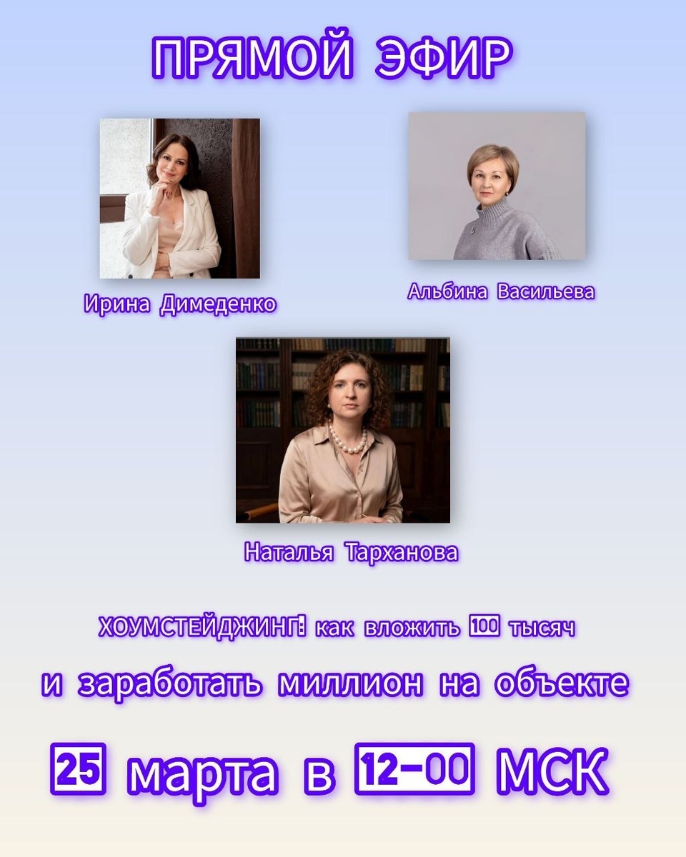 Почему одни квартиры продаются месяцами, а другие уходят за неделю с аукционом на повышение цены? Ответ в одном слове – упаковка. Приглашаю на прямой эфир, где покажем на цифрах и кейсах, как этот инструмент превращает обычные метры в объект - магнит Какие методы оформления и декора помогут сделать квартиру или дом более привлекательными для покупателей и арендаторов. Это не просто модный тренд — эффективный хоумстейджинг может увеличить скорость продажи и повысить цену! Не пропустите полезные советы от экспертов и реальные кейсы. 📅 Когда: 25 марта 2026 года 🕛 Во сколько: 12:00 по Московскому времени 📍 Где: Прямой эфир в Zoom 🔥 Как попасть на эфир? Если тема для вас актуальна и вы хотите узнать секреты упаковки — ставьте «+» в комментариях, и я отправлю вам ссылку на вход в Zoom