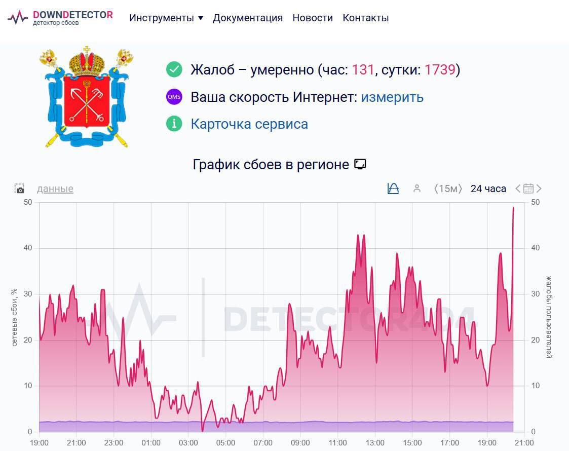 ❗️В Петербурге начинались проблемы с мобильным интернетом Чтобы оставаться на связи и получать важные уведомления — подписывайтесь на наш канал в МАХ А у вас работает мобильный интернет? ❤️— все работает! 👎— нет, все плохо 📷: Downdetector Читай нас в MAX! | Читай нас в Telegram