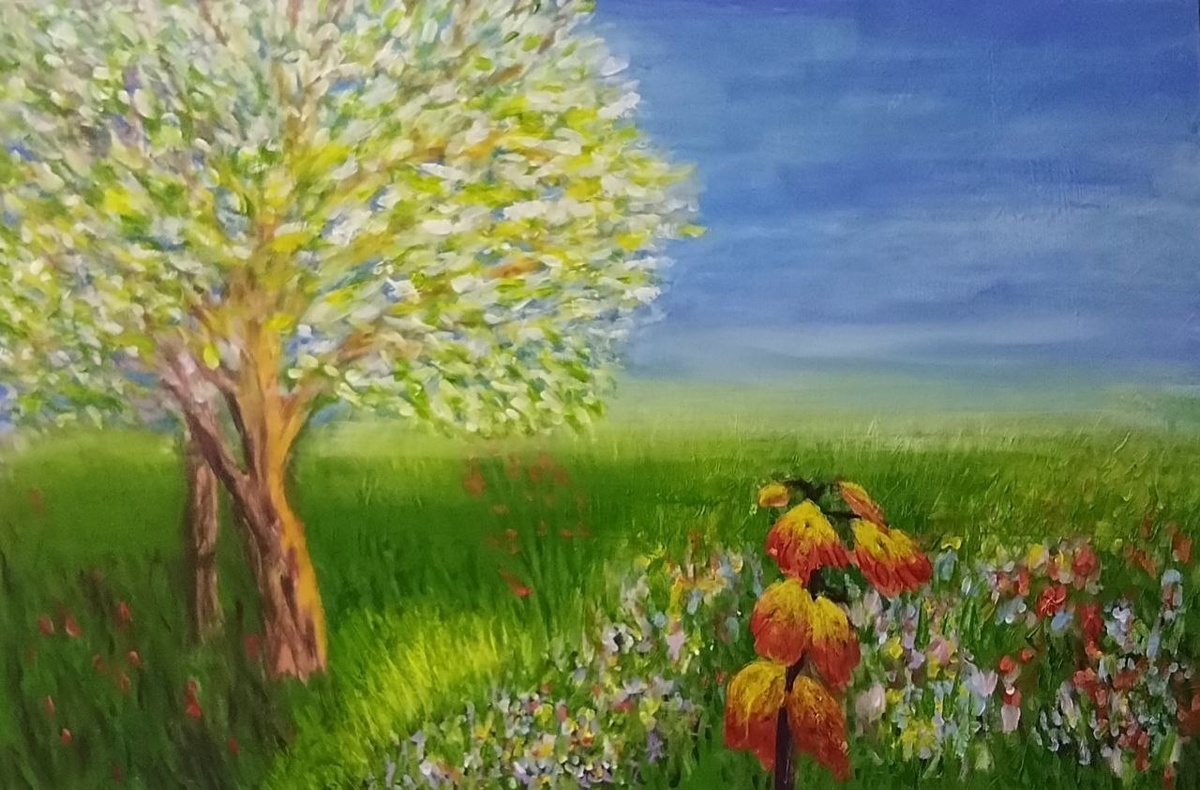 Здесь красиво Давно не брала в руки кисть. Целый месяц — как будто выпала из времени… Жизнь сделала резкий поворот — рука оказалась сломанной. Но даже тишина когда-нибудь заканчивается. И вот я снова возвращаюсь. Осторожно. Почти шёпотом. Лёгкое «тык-тык» кистью — и вдруг рождается пейзаж. Эта работа — про пробуждение. Про тот момент, когда мир ещё спит, но уже дышит весной. Про тихое восхищение, без громких слов. У нас ещё лежит снег, линии резкие, почти графика. А внутри уже просятся мягкие зелёные, тёплые вспышки цвета… Где-то на юге, уже цветут вишни и магнолии. А у нас — только предчувствие. И в этом есть своя нежность.