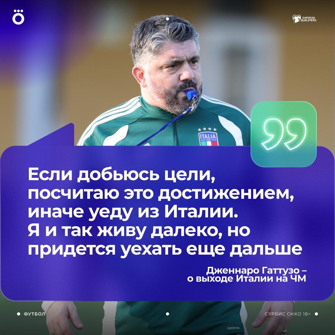 В случае неудачи Гаттузо даже пообещал уехать из страны 🤯 Стыковые матчи стартуют в четверг. Увидим итальянцев среди участников ЧМ? 👍 / 👎 😀 VK Okko Cпорт, MAX Okko Спорт
