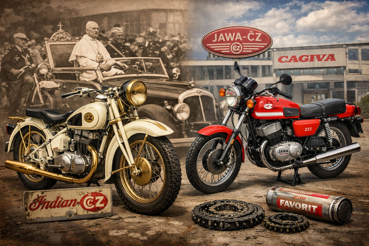 Есть и совсем необычный факт: в конце 30-х годов Папу Римского сопровождал эскорт на белых мотоциклах ЧЗ 500. Причём вместо привычного хрома — позолота. История почти легендарная — но вполне реальная.