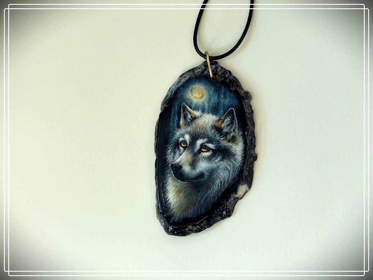 О ювелирной живописи на камне я рассказываю часто. Поэтому сегодня покажу немного, как меняется и оживает рисунок под кистью, и насколько отличается самый первый слой краски, нанесенный на камень, от готового украшения, работа над которым закончена. Для тех же, кто недавно подписался на канал, немного расскажу, почему живопись на камне называется "ювелирной". Мастер подбирает камень под определенный рисунок. Или же сам камень служит подсказкой для будущего изображения. С помощью масляных красок художник тончайшей кистью создает на поверхности камня миниатюрную многослойную живопись. Когда работа завершена, камень превращают в ювелирное украшение. Я не особенно люблю изображать агрессивных животных. Поэтому "ласковые и нежные" звери появляются у меня намного чаще. В этот раз на двух срезах агата я написала рысь и волка Для волка я подобрала черный агат с природным не обработанным краем. Такой край называю еще "диким". Первый слой краски - это только "наметка", как будет выглядеть зверь,