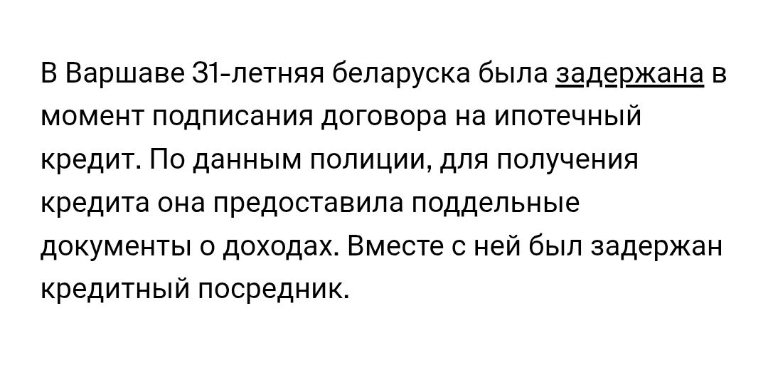 Девушка, работающая по В2В, скорее всего айтишница, пришла в банк за ипотечным кредитом. Как только она поставила подпись под заявлением, её задержали. Это нифига не шутки, ей грозит до 5 лет с последующей депортацией на родину. Сейчас расскажу, как это работает, будьте внимательны. Вместе с девушкой задержали её кредитного консультанта. Я уверен на 100%, что идея завысить доходы под необходимую сумму кредита - это его (её) идея. Потому что когда-то сам, точнее моя жена, айтишница, работающая по В2В, получала такое же предложение. Подход был такой: не сцы, все украинцы так делают, ещё никого не зажопили. Кроме того, что моя Катя не украинка, так она ещё и сверхзаконопослушный человек. Понятно, что предоставление в банк заведомо ложных документов образует состав выманивания кредита. Единственно правильным решением, если вам предлагают такой способ натянуть доходы под требуемую сумму кредита - это расстаться с таким консультантом без сожаления. Работники банка могут усомниться в ваших д