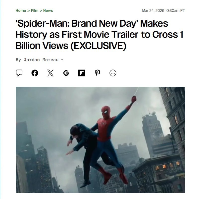 Трейлер нового «Человека-паука» взорвал интернет — за 4 дня собрал 1 миллиард просмотров и стал самым популярным в истории
