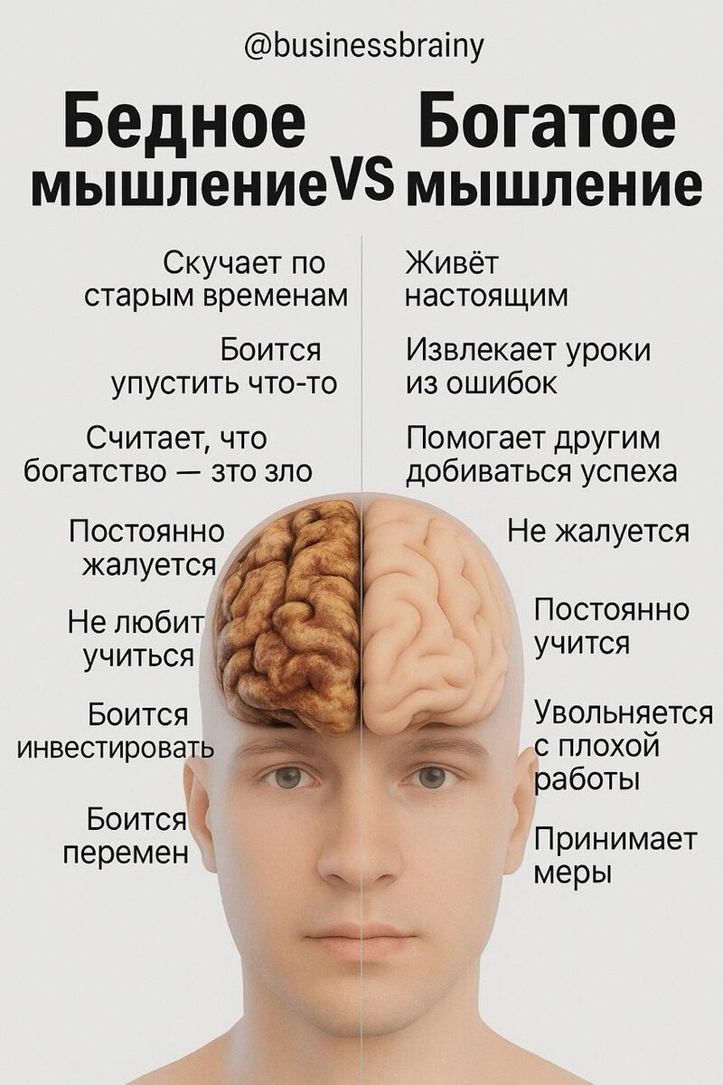 Мышление бедного и богатого человека отличается по ряду ключевых признаков, которые определяют их отношение к деньгам, жизни и возможностям. Вот основные различия:
