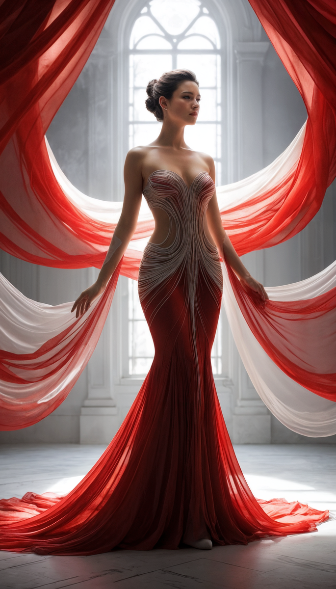 💫Добро пожаловать в мир Нейромагии✨ Шёлковые волны обнимают силуэт, красные потоки пульсируют как сердце, белые полосы хранят память о прикосновении ветра. Каждая складка хранит тайну движения, каждый изгиб открывает пространство между реальностью и мечтой. Эти образы существуют в моменте — там, где элегантность обретает голос через цвет и форму. Красота становится языком, на котором говорят свет и тень в едином ритме. Красивый образ, шелковые ткани сложной текстуры и украшений играют светом и тенями, создавая сцену элегантности и тайны вокруг прекрасной женщины, великолепный и потрясающий портрет в полный рост, идеальная осанка, яркие цвета, совершенство, высокое разрешение, эпическое сочетание белого и красного, световые эффекты, безумие Кингшука, сложное динамическое освещение, люминизм, сверхдетализация, отмеченный наградами шедевр, студийное фото Настал момент для души. В НейроМагии красота не требует усилий — только присутствия. Как дыхание. Эти нейроарты сделаны мною, чтобы вд