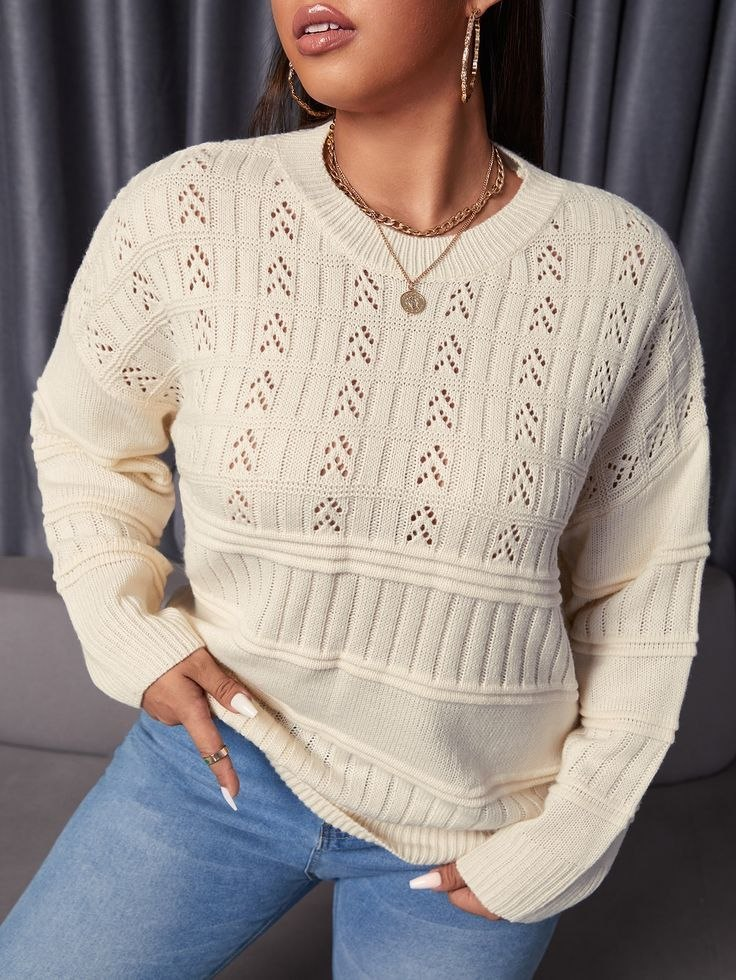Мне очень нравится, как этот пуловер смотрится на девушке: он кажется свободным, но при этом создаёт иллюзию стройности. Такие изделия прекрасно подходят для больших размеров. Обязательно сохраняйте эту идею в свою копилку!