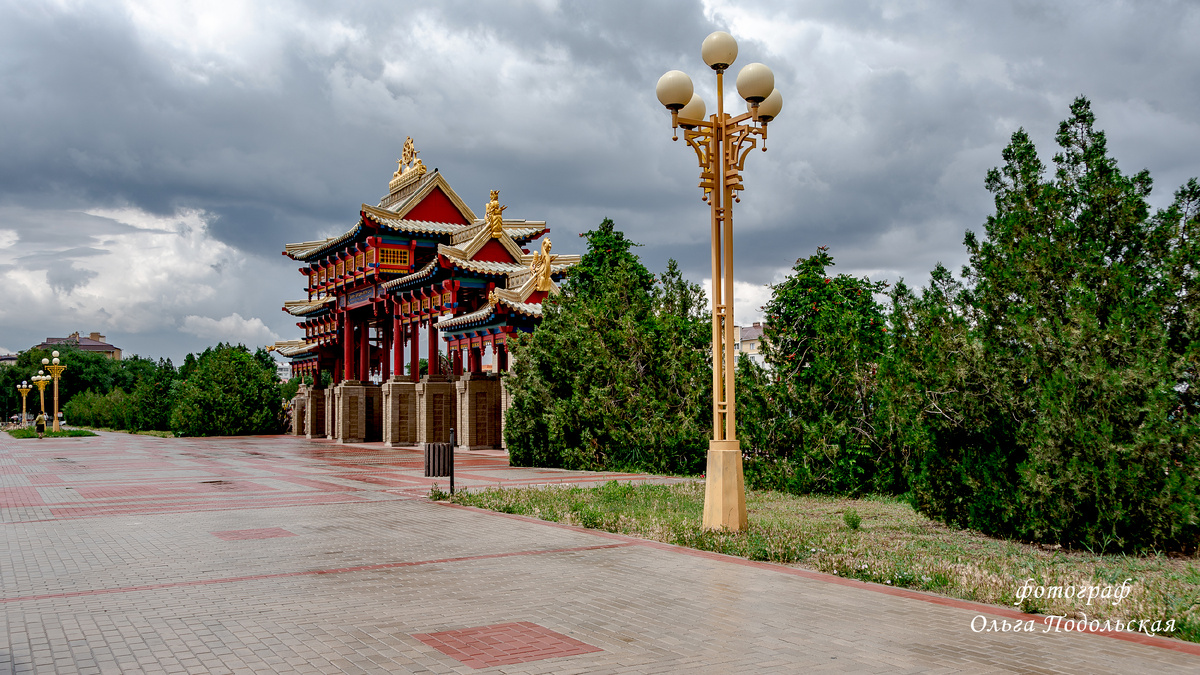 Привет, друзья! Сегодня хочу поделиться с вами кусочком своего лета — а точнее, одним особенным днем из моего отпуска в июне 2025 года. Вы же знаете, как это бывает у блоггера: даже когда отдыхаешь, камера всегда под рукой. Я собиралась снять обычный репортаж о Золотая обитель Будды Шакьямуни, но погода решила внести свои коррективы, и знаете — это пошло только на пользу. В Элисте мы с мужем были проездом. В тот день было не привычное яркое солнце, а сплошная облачность. Небо напоминало большое пушистое, но темное одеяло, которое затянуло всё вокруг. Сначала я расстроилась: думала, что не удастся поснимать кадры в Золотой Обители, времени ждать, когда пройдет дождь, не было. Пейзажи выглядели не привычными для меня, очень ярко и драматично одновременно. Краски стали насыщеннее: зелень казалась изумрудной. Но дождь оказался не занудой, а гостем на пять минут. Сначала я смотрела на красоту из окна машины. Дождь стих. Чуть позже совсем закончился так же внезапно, как и начался, случилось