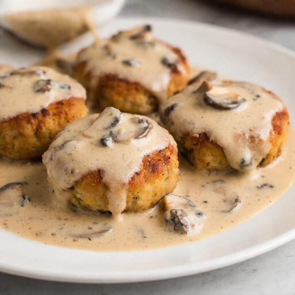 Современная интерпретация рецепта 1917 года — биточки из судака в сливочно-грибном соусе с белым вином. Вместо судака можно использовать другую рыбу.