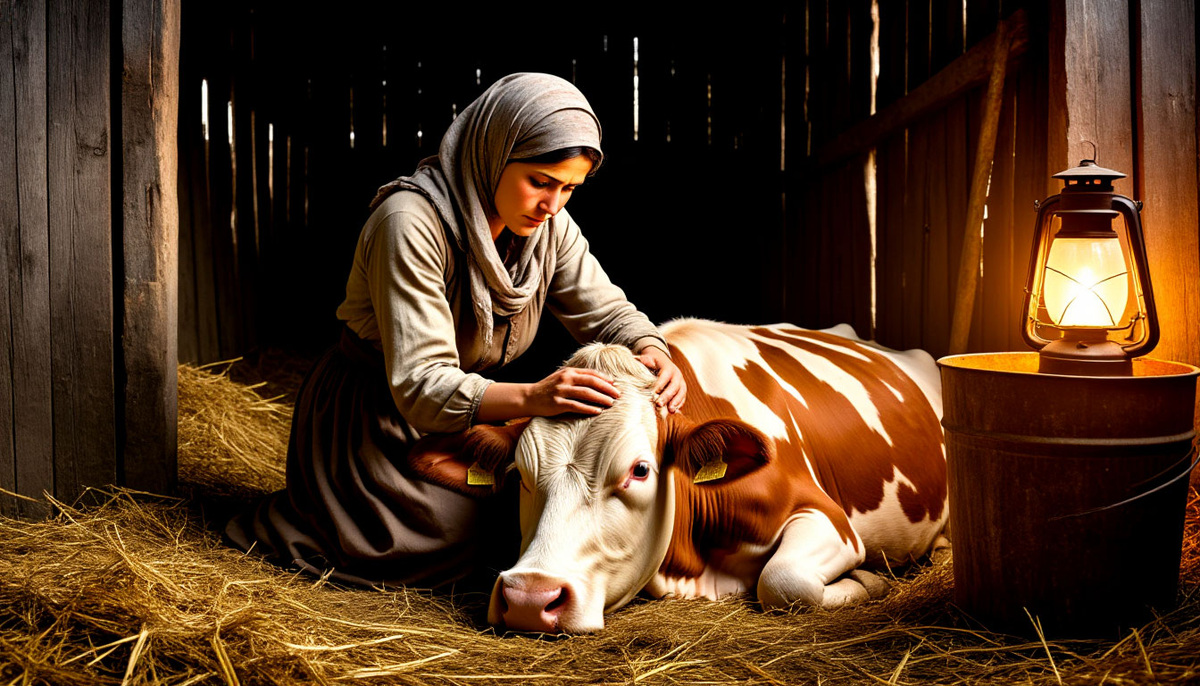 Зорька встретила её тихим мычанием. Корова была худая, рёбра торчали, но вымя набухло — молоко прибывало. Катерина присела на скамеечку, прижалась лбом к тёплому боку. Зорька вздохнула, переступила копытами.