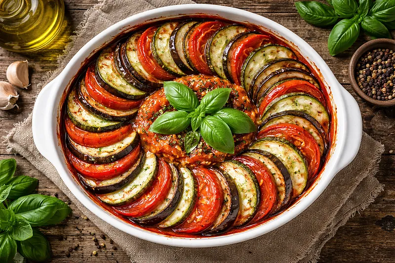 Рататуй — традиционное блюдо прованской кухни, которое идеально подходит для полезного и красивого ужина. Овощи, запечённые в духовке с травами, сохраняют максимум пользы, а их естественные вкусы создают гармоничную композицию без лишних калорий. Блюдо получается сытным, но очень лёгким.