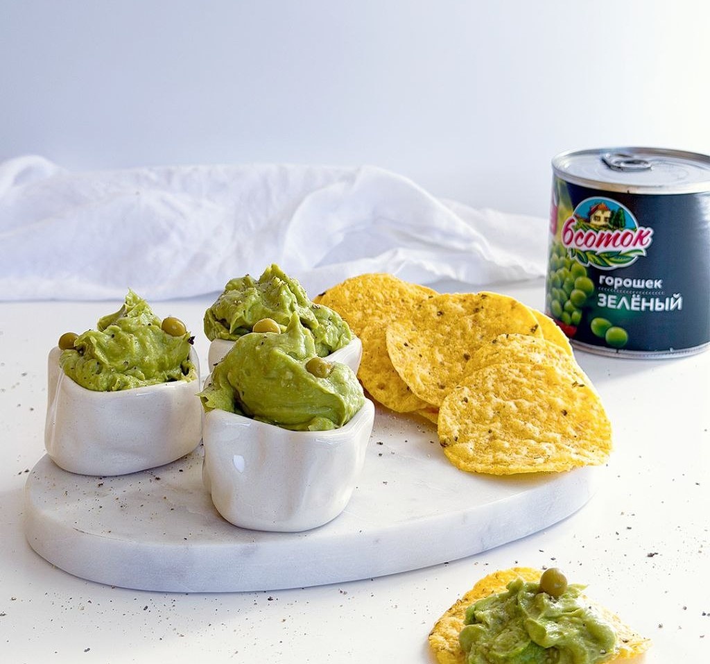 Постная еда — не всегда скучно. Предлагаем приготовить яркий, нежный и очень вкусный дип, где классический вкус авокадо встречается с неожиданным, но гармоничным партнером — сладким зеленым горошком «6 соток». •Кукурузные чипсы (начос) - для подачи