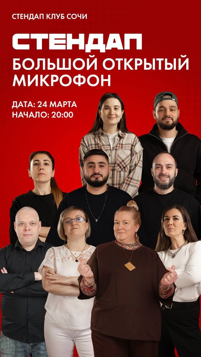 24 марта l Большой открытый микрофон Ведущий — Роман Рор. 🎫 БИЛЕТЫ 399₽ 25 марта l стендап без мата 🎫 КУПИТЬ БИЛЕТ 27 марта l ТОП стендап Артур Киш, Антон Погосян, Сергей Пискунов, Артём Степанов, Илья Емелин. 🎫 ХОЧУ БИЛЕТ 28 марта l грязный стендап 6 крутых комиков! 🎫 ЗА БИЛЕТАМИ 🕖 Начало 20:00 Сбор гостей с 19:00 📍 Стендап Клуб Сочи, ул. Юных Ленинцев, 10/2 📞 89181061088