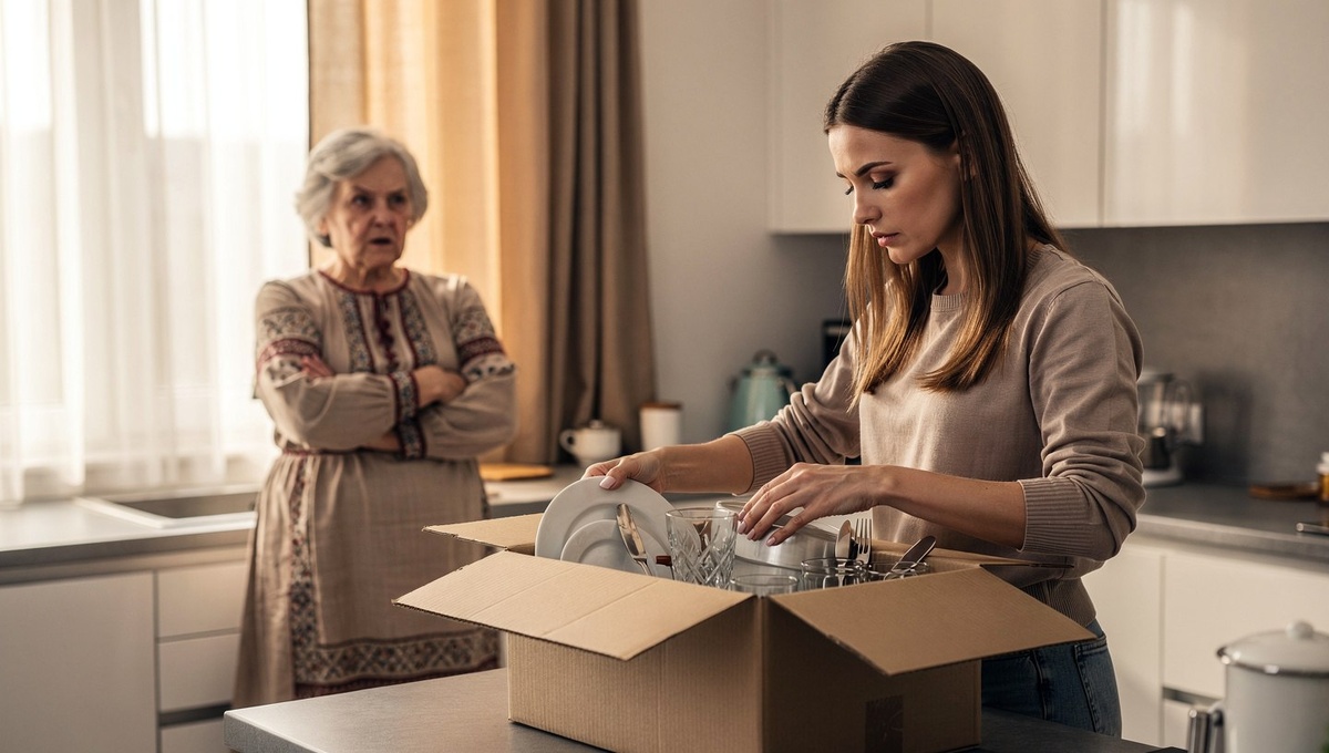 Она достала с антресолей большую картонную коробку. Молча, не торопясь, начала снимать с полок чужие банки, чужие контейнеры, чужие пакетики со специями. Аккуратно, без злости, без демонстративных жестов. Просто складывала вещь за вещью в коробку. Сняла аляповатые занавески с розами, свернула, положила сверху.