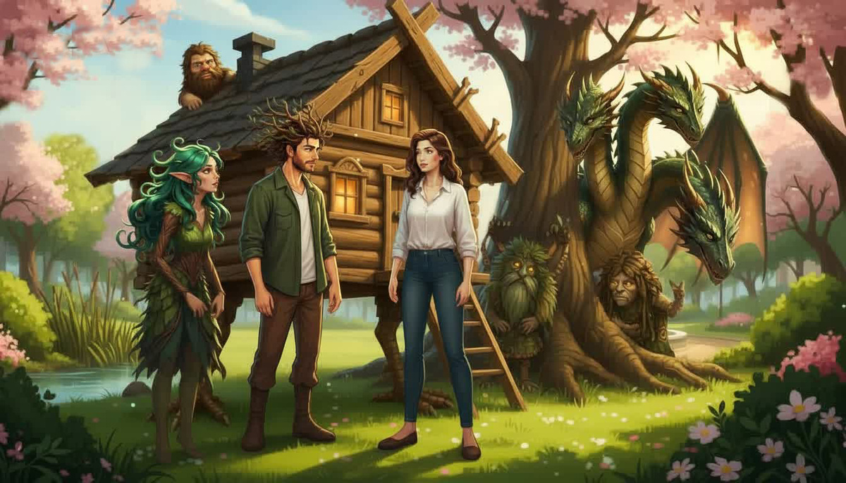 Варя посмотрела на эту разношёрстную компанию: Горыныч, который пытался заставить все три головы лаять одновременно (правая так и спала, но всхрапывала в такт), Зинаида, репетирующая роль курьерши с коробкой, полной тины, и леший с папкой из берёсты.