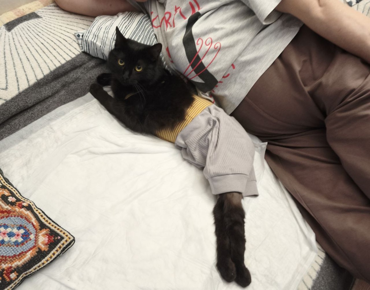 Та самая кошечка, про которую мне было горче всего. Я все думала про нее. Сначала – как я ее довезу, потом – как я ее вылечу и где возьму столько средств, потом – как я ее заберу ее из ветклиники и где размещу, а уж тем более меня сбивал с толку вопрос "Как я ее пристрою?" А все устроилось лучшим образом. И довезла. И доктора вылечили. А дальше произошло и вовсе чудо – ее забрали отличные люди. Как вчера написали в комментариях – не всем людям везет за жизнь встретить таких людей, а уж тем более прожить с ними всю жизнь. Черничке повезло. Пусть ей повезет на всю долгую счастливую жизнь! Черничку там во всю лялят и тетешкают (слова авторские - от хозяйки). Спит она на ручках или на подушке, носит лучшие одежды и живет в мире и согласии со всеми кошачьими того дома. Играет, ловит игрушечных мышек и очень шустро. Всем там хватает любви, внимание и заботы. Да, вот так вот волшебно бывает. Это волшебство сделали мы с вами. Спасибо всем участвующим!