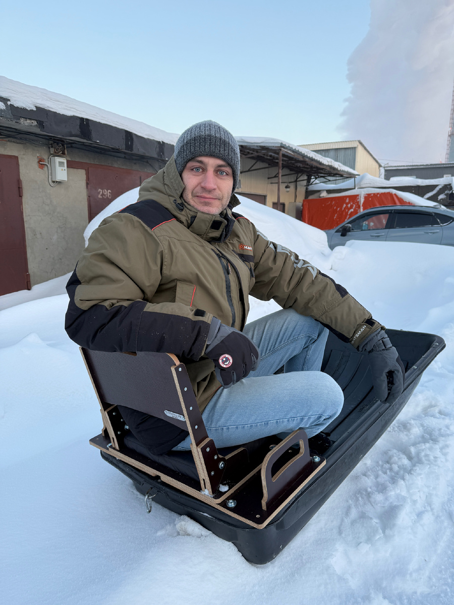 Были у меня одни, которые мы с Георгием ещё лет пять назад купили б/у за 2000 рублей. Тогда они нужны были, чтобы ездить с Максом на рыбалку. Их я переделал для пассажиров: установил мягкую сидушку со складной спинкой — получилось удобно.