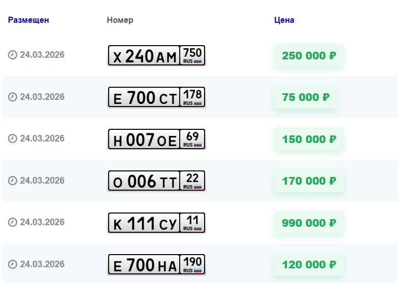 🚘 Красивые номера для машин начнут продавать через Госуслуги с 1 июля 2026 года