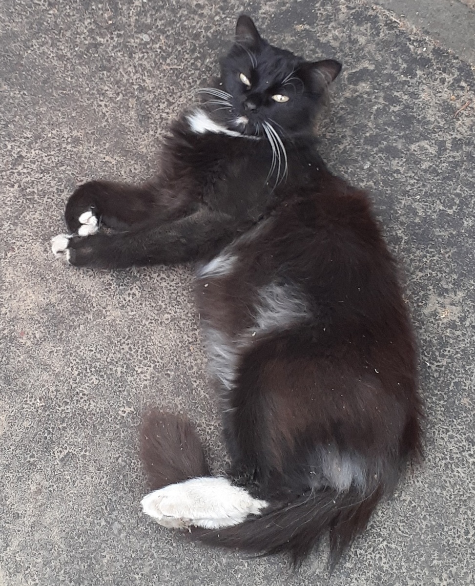 В город наконец пришла настоящая весна - снег растаял, гололёд закончился, и природа готовилась нарядиться в зелёные цвета. В один из уютных дворов этого города пришёл котёнок. Откуда он пришёл - загадка. Но своим появлением изменил несколько судеб. Котёнок этот был удивительно красив - сам чёрный, а лапки белые, словно носочки. Белыми же были и его усы - и как же они выделялись на его мордочке! Но самым красивым местом была его грудка - белая, словно он надел галстук. В этом дворе уже жил дворовый рыжий кот с белыми пятнышками на груди, всеобщий любимец, предпочитавший свободную жизнь на улице. Как же он примет котёнка? Оказалось, что вполне хорошо принял и даже играл вместе с ним, угощал едой. Кто бы ни пришёл кормить рыжего кота, все удивлялись: рыжий лапкой придавливал голову котёнка к еде, ждал, когда тот наестся, а потом ел сам. Котёнок чувствовал себя под надёжной защитой. По отношению к людям котёнок был настроен враждебно: шипел, был готов кинуться и расцарапать любого. А вот мяукать увы отчего-то не мог. Все надеялись, что со временем котёнок оттает и станет более ласковым. Вот наступил май - время цветущих деревьев, пышного цветения сирени и тёплого воздуха в природе. Изменилась жизнь во дворе. Рыжего кота забрали волонтёры, чтобы подлечить и отдать в добрые руки; чёрный котёнок убежал от волонтёров в подвал.