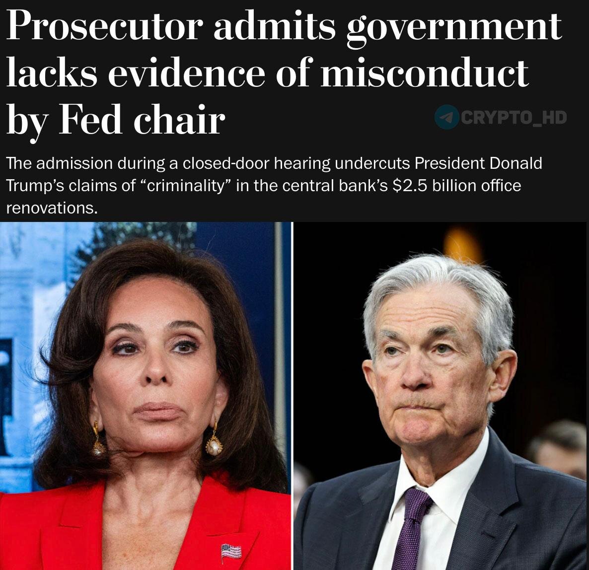 🇺🇸 WP: Прокурор признал, что у правительства нет доказательств неправомерных действий главы ФРС Джерома Пауэлла