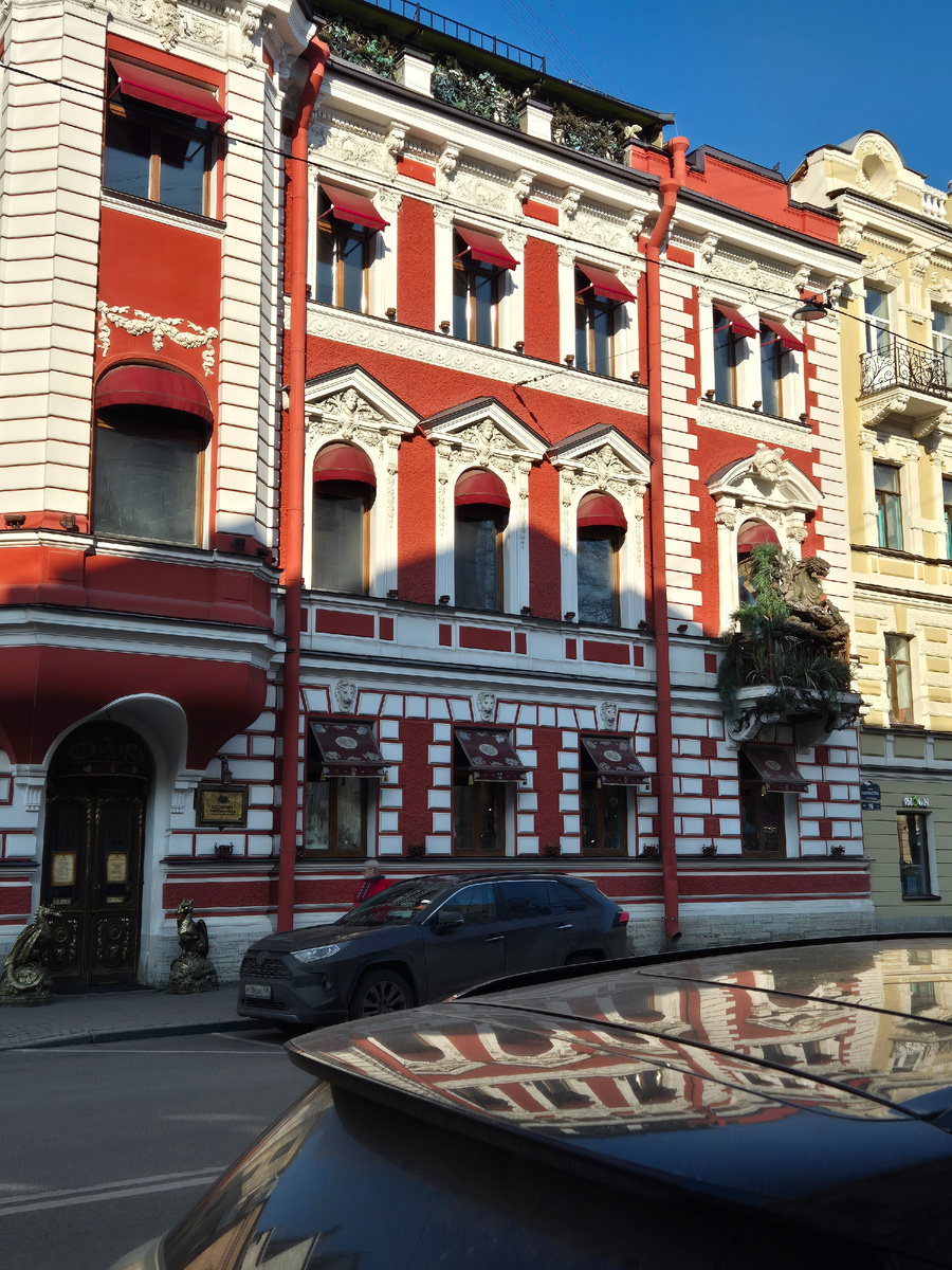 Обратно шли уже по улице Восстания до Невского. Здесь дома тоже с историей – это чувствуется. Вон один, с мощными колоннами, похож на дворец. Другой – с лепниной, какой-то особенно нарядный. Третий – строгий, в тёмном граните. Кто здесь жил? О чём думали люди, глядя из этих окон? Гуляя по таким улицам, невольно начинаешь придумывать свои собственные истории. Это же так интересно – просто идти и представлять!
