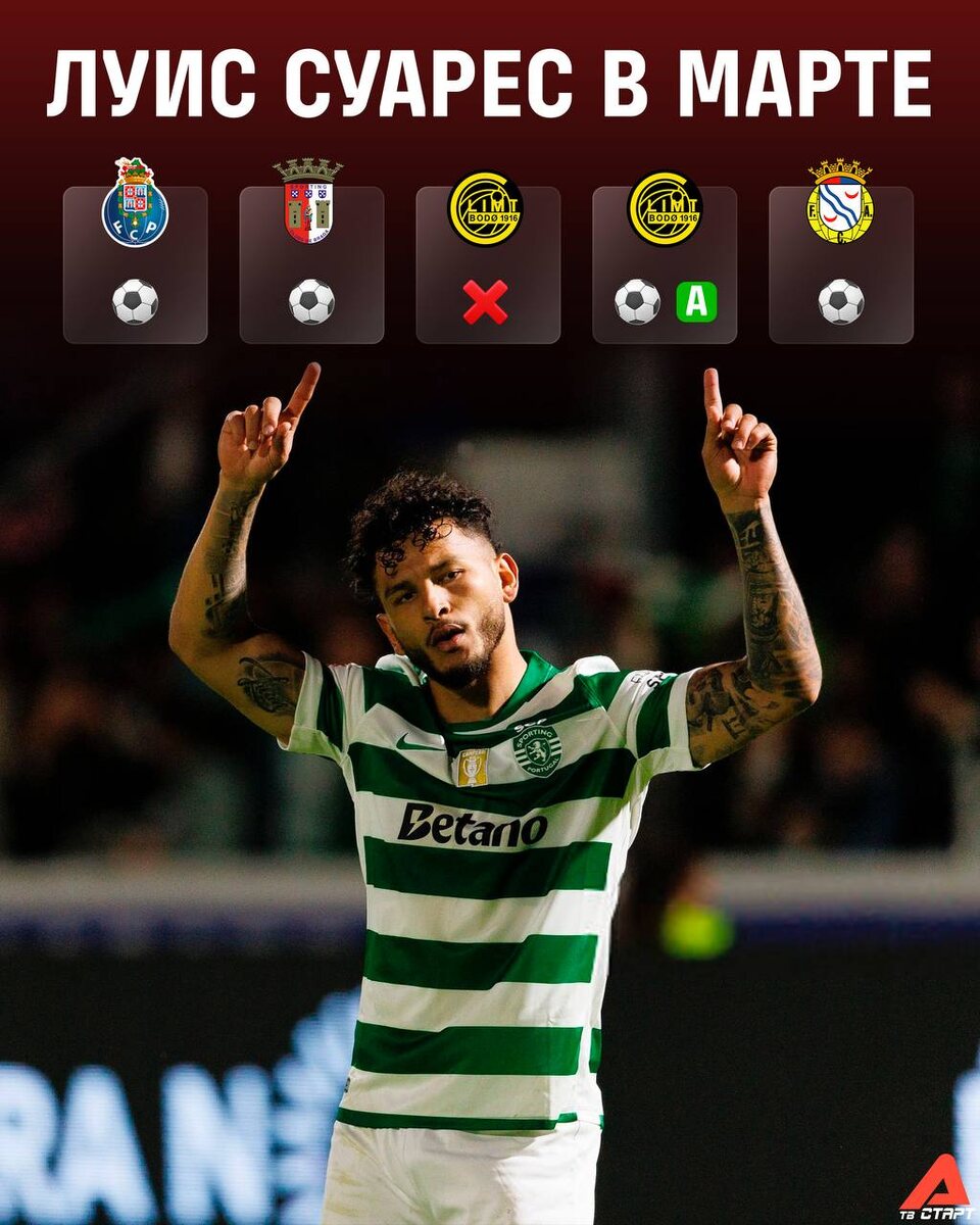 ! Очередной крутой месяц от колумбийца. Лишь в одном матче за «Спортинг» он не забил. И то — в ответной игре против «Будё-Глимт» отметился аж двумя результативными действиями. Заберет топ-клуб этого парня? 😏 Подписывайся на ТВ СТАРТ в MAX📲