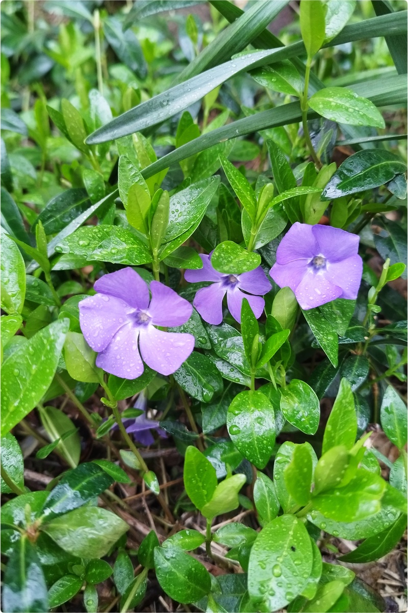 Барвинок – очень красивое, а главное неприхотливое вечнозелёное травянистое растение. Выделяется своими фиолетовыми цветами и плотным зелёным ковром, со стелющимися узловатыми побегами длиной 50–60 см, и высотой 10–20 см. Кроме того у него есть несколько весьма красивых и интересных версий о происхождении. Барвинок малый (Vinca minor или Perwincle) – самый распространённый, зимостойкий, вечнозелёный, стелющийся вид растения. В Анапе данный вид барвинков встречается в таких местах где другим цветам и растениям не совсем уютно - растёт как в тени, так и на солнечной стороне, на любой почве, как на увлажненной, так и на сухих участках. Считается, что срезанная веточка с парой капель воды не вянет, а если воткнуть во влажную землю - укореняется и живёт дальше. Красиво и совсем без хлопот. Данный факт я не проверял, но верю. Ведь про барвинок ходят весьма интересные легенды. Рассказывают, что гербарный экземпляр барвинка, заложенный в книгу в XVIII веке, через 200 лет дал корни после того