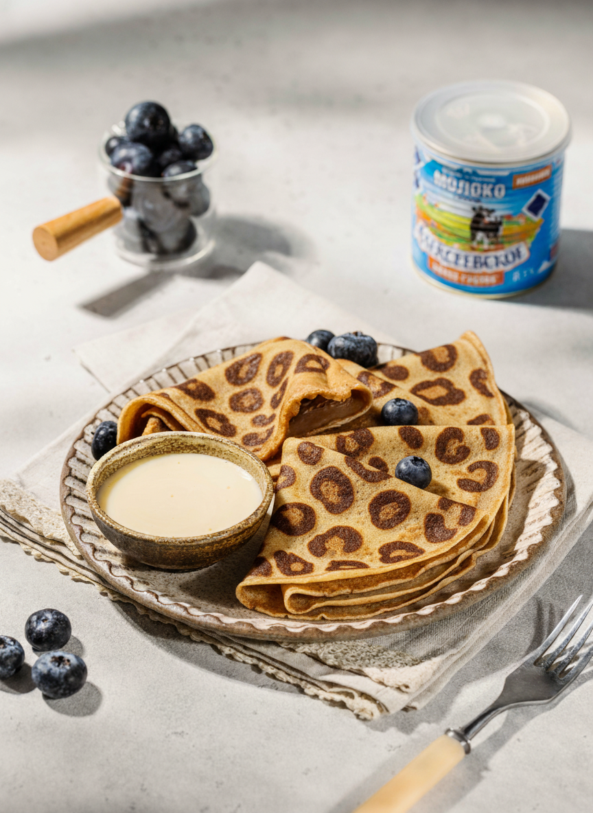 Хотите удивить близких? Попробуйте испечь самые стильные блины этой весны. Леопардовый принт — это не только модно, но и невероятно вкусно в дуэте с любимым сгущенным молоком.