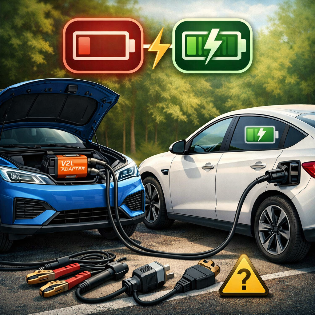 Представь ситуацию: ты на электромобиле, батарея — 0%, зарядки рядом нет, эвакуатор стоит как крыло от самолёта, и ты стоишь посреди дороги с одним вопросом: 👉 “А можно просто зарядиться от другого электрокара?” Звучит логично. Ведь батарея есть и там, и там. Почему бы не “перекинуть” немного энергии? Мы не стали гадать — мы реально попробовали. И вот что получилось 👇 Скажем честно — это может случиться с каждым. Даже если ты не новичок. Причины банальные: И вот ты уже не доехал. С ДВС всё понятно: А тут? 👉 Электричество “в канистре” не привезёшь