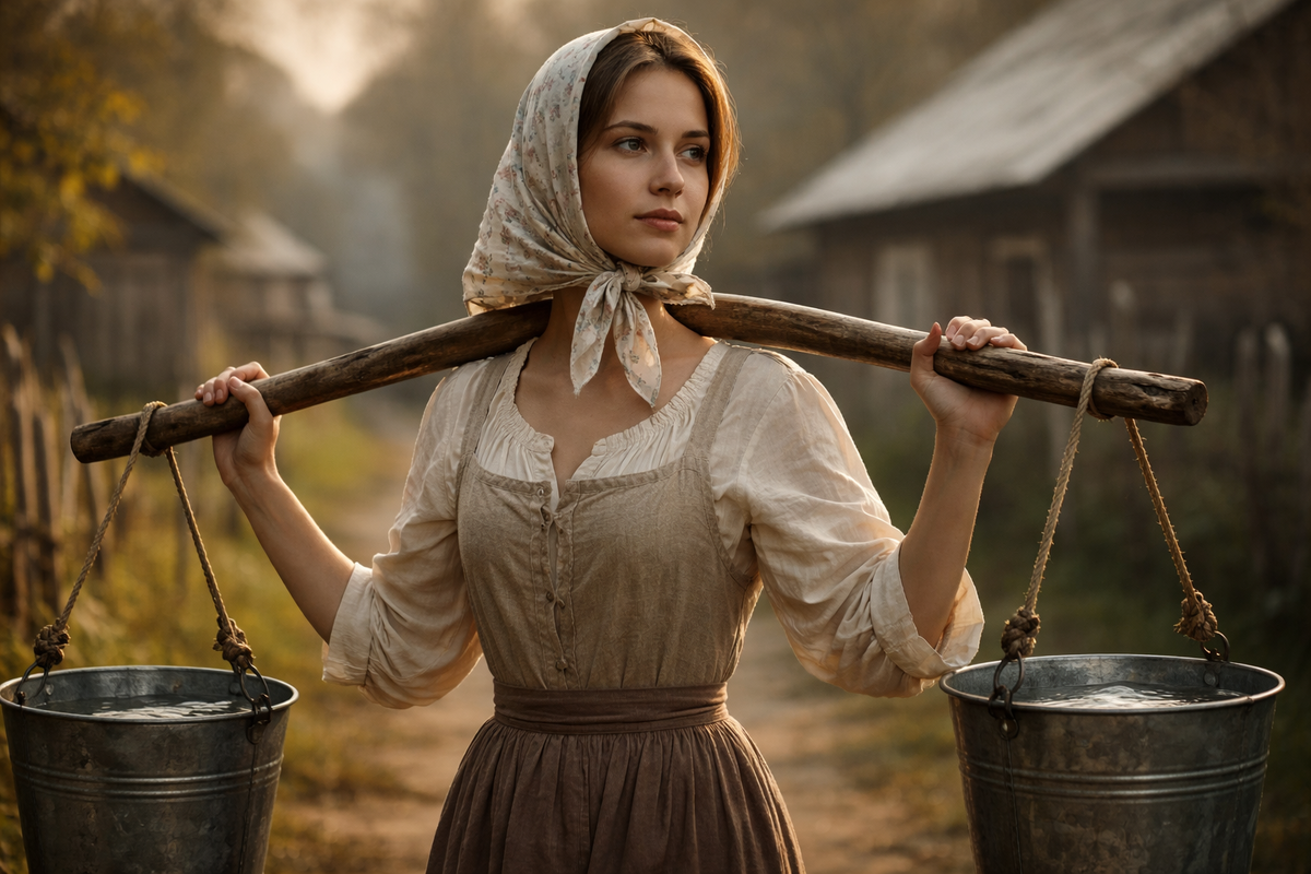 Фотография лежала в банке с пшеном, будто её спрятали не от чужих, а от родни. На снимке девушка в светлом платке держала коромысло легко, как ветку, и смотрела не в камеру, а чуть левее, словно там стоял человек, ради которого стоило улыбнуться.