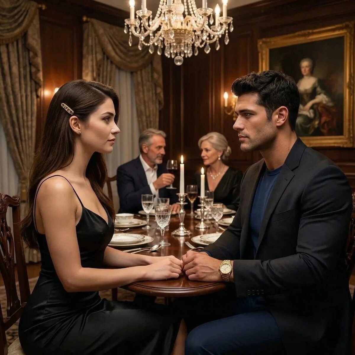 Ужин тянется бесконечно. Я ловлю на себе взгляды: мама Олега — одобрительные, отец — изучающие, а Всеволод… Всеволод смотрит на меня так, будто я — загадка, которую он хочет разгадать. И чем больше он смотрит, тем сильнее я путаюсь в собственных словах.