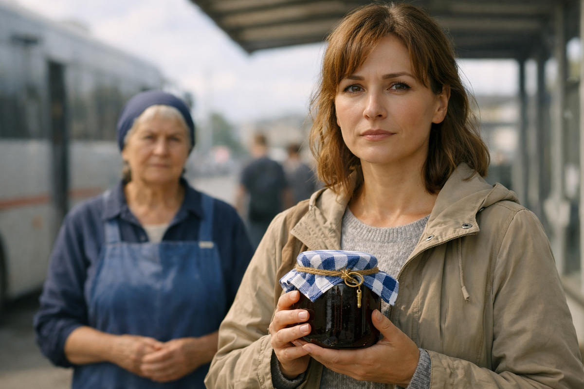 Лида выключила экран. В стекле напротив отразилось её лицо, утомлённое, будто за эти дни она стала старше не на три дня, а на несколько лет. Сумка стояла на соседнем сиденье. Банка, завёрнутая в клетчатую ткань, чуть поблёскивала сквозь приоткрытую молнию.