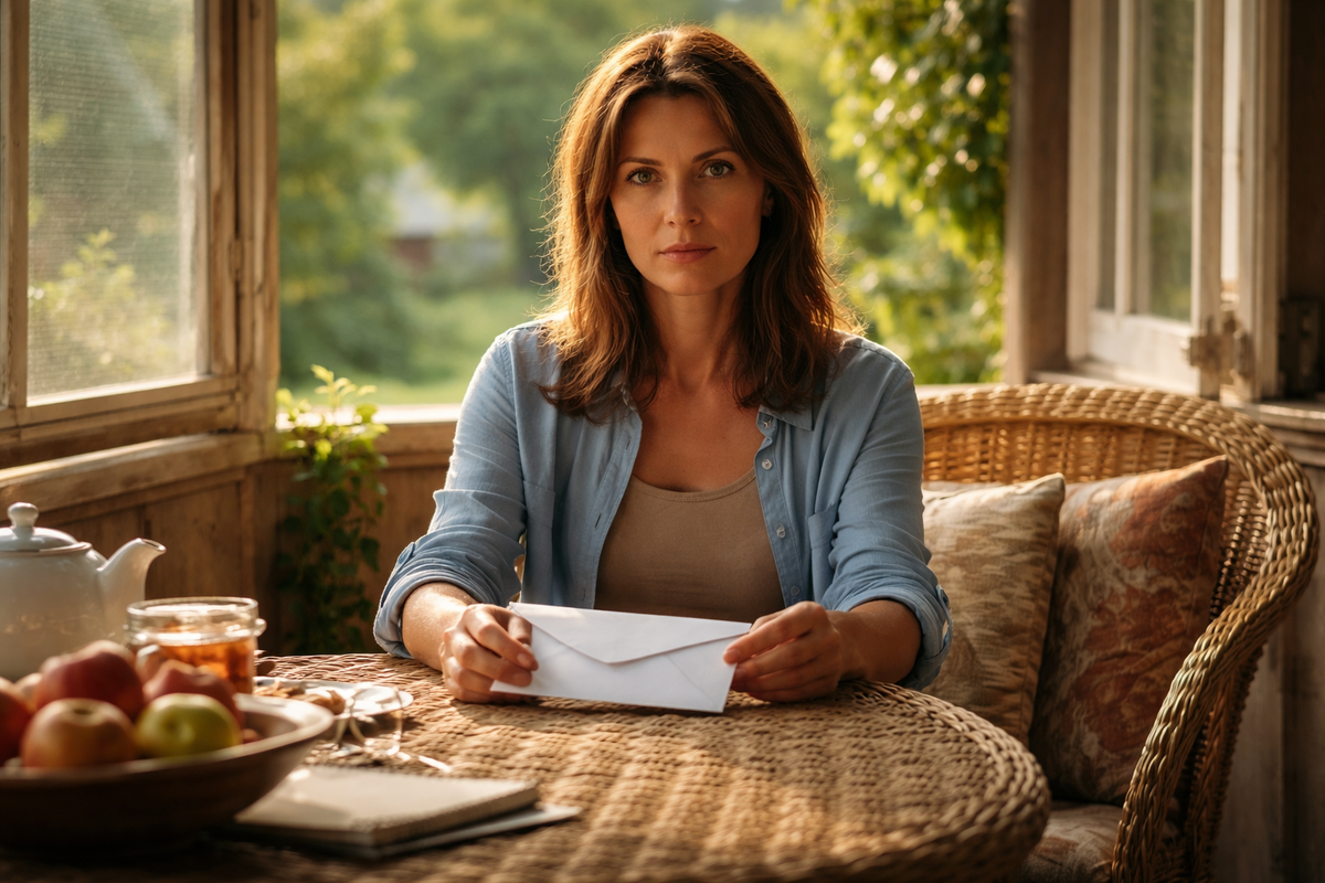 Белый конверт лежал на плетёном столике так ровно, будто его положили минуту назад. Алина остановилась на пороге, не сняв босоножек, и сразу узнала почерк, крупный, с чуть заваленной вправо буквой Л.