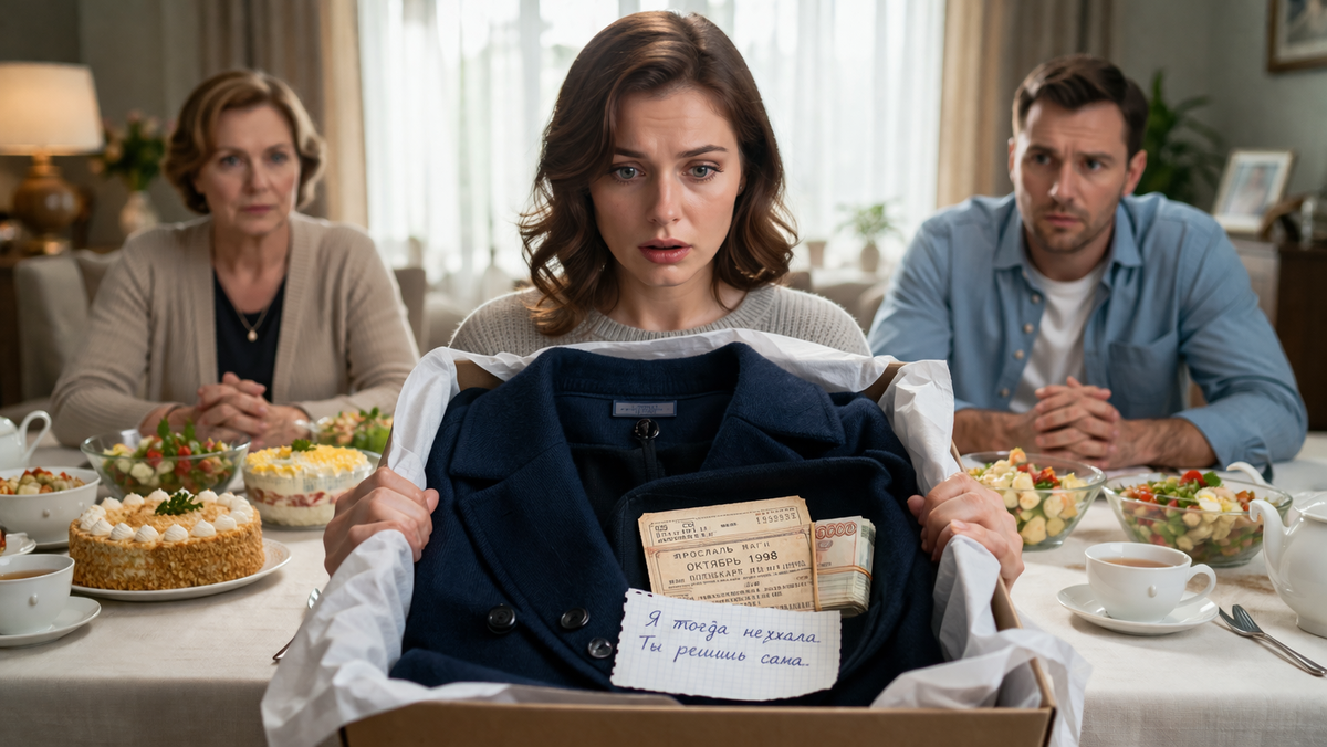 Алина раскрыла коробку и увидела старое тёмно-синее пальто. За столом сразу стало тихо, словно Вера Павловна положила перед ней не вещь, а чужую, давно отложенную судьбу.