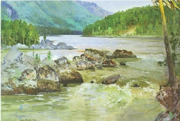 Диалог с Катунью — Откуда течёшь, Катунь? — Из самого сердца гор. А горы — родимый край — Зовут Голубой Алтай. — Стремительно мчишь зачем Ты волны кипучие? — Чтоб лес, изумлён, глядел, Склонившись над кручею. — Грохочущий бег твой дик Тропою неторною… — Безмолвных суровых глыб Я дочь непокорная. — По осени разовьёшь Бурунные локоны… Где синь‑бирюзу берёшь? — От неба высокого. — Глубин твоих полумрак Прозрачен до донышка!.. Искришься и блещешь как? — От ясного солнышка. Ещё я спросить хочу: — По камням не больно ли? — Я камни волной сточу, Душа моя вольная!.. Юлия Туденева Картина Г.И. Чорос-Гуркина «Катунь» #поэзиягорногоалтая #живописьгорногоалтая