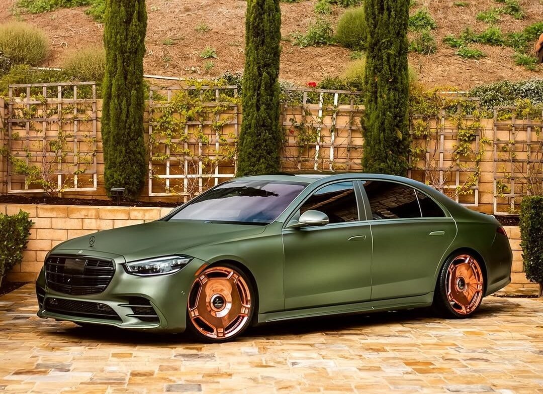 Вот что звучит невероятно, пока не присмотришься повнимательнее, Mercedes-Maybach S-Class, отличающийся очень яркими цветами, и знаете что. Он выглядит вполне уместно. Честно говоря, по мнению многих, роскошный седан немецкой компании довольно приятен внешне и довольно интересно анализировать его яркий экстерьер. И конечно же не считать его чрезмерным. Следует помнить, что речь идёт о модели, которая соперничает с такими гигантами, как Rolls-Royce Ghost и Bentley Flying Spur. Однако на данный момент не может сравниться с RR Phantom. Все потому что это настоящая «сухопутная яхта», которая играет в игру роскошных седанов сама по себе. Что же первым бросается в глаза в этом конкретном Mercedes-Maybach S-Class? Конечно же, краска. Но это действительно краска или плёнка? На самом деле, мы не знаем ответа на этот вопрос. Если бы нам пришлось гадать, мы бы предположили, что матовый зеленый цвет, скорее всего, был достигнут путем оклейки автомобиля виниловой пленкой. Также присутствуют некото