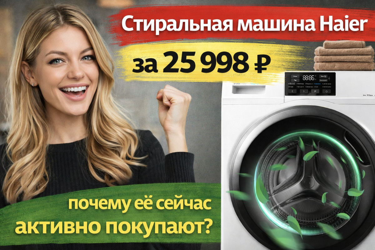 Когда я увидела инверторную стиральную машину с паром дешевле 26 000 ₽, сначала подумала — наверняка есть компромиссы. Обычно такие функции встречаются в моделях дороже 35–45 тысяч. Решила разобраться, стоит ли она своих денег или лучше доплатить за другой вариант. Речь про Haier HW60-BP10919B — компактную стиральную машину с загрузкой 6 кг, 10 программами и функцией освежения паром. Сейчас цена 25 998 ₽ вместо 42 990 ₽, а значит экономия получается очень ощутимой. В бюджетном сегменте часто приходится выбирать между ценой и комфортом. Но здесь сразу несколько полезных функций, которые обычно встречаются в более дорогих моделях: ✔ инверторный двигатель