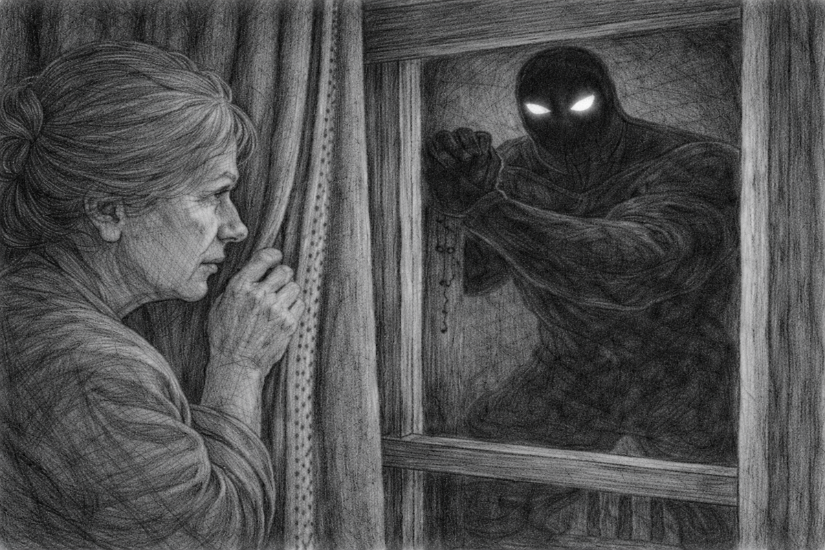 Той ночью тетя Аня крепко заперла двери времянки и легла спать. Около часа ночи её разбудил громкий стук в дверь. Это был не случайный и не робкий стук — в нём чувствовалась требовательная, почти яростная настойчивость. От