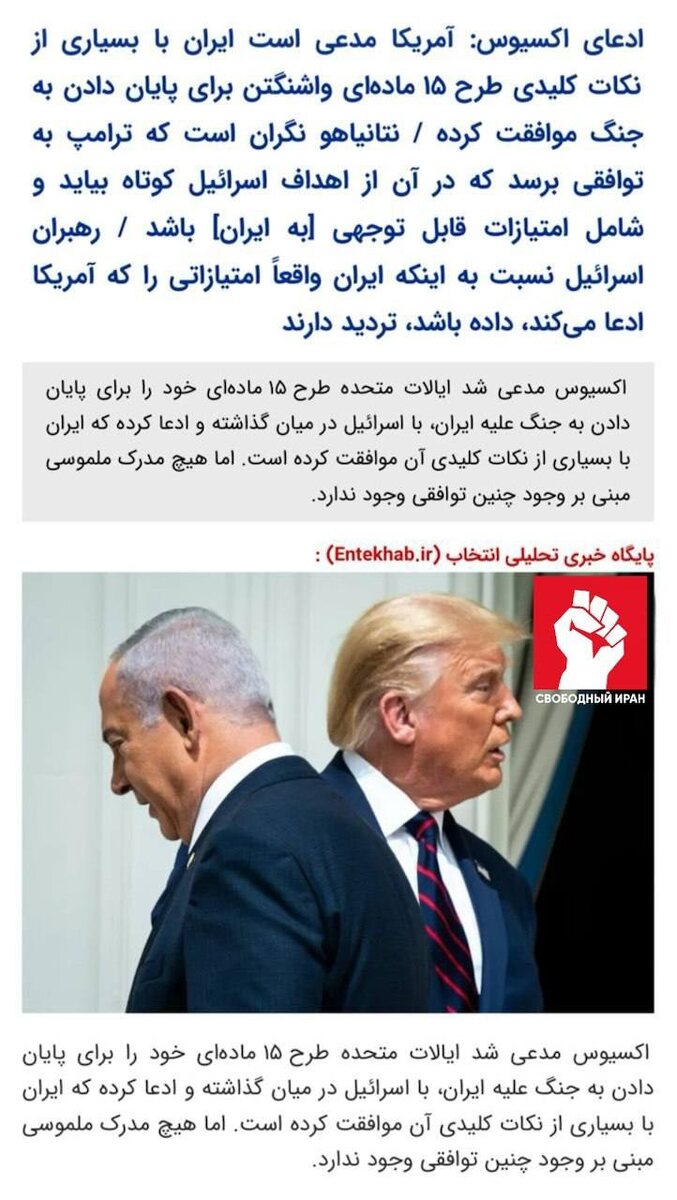 🛑 Axios пишет, что Вашингтон передал Израилю план по завершению войны с Ираном, а Тегеран, по версии издания, согласился с рядом ключевых пунктов. 🤔 Подпишитесь на канал