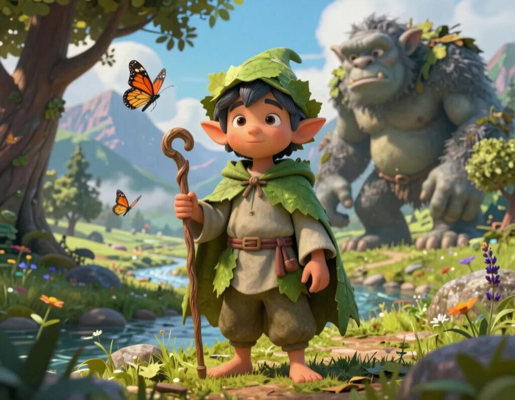 В далёкой долине, где горы касались облаков, а реки пели волшебные песни, жил маленький Мук. Он был ростом с ёжика, носил плащ из листьев и всегда держал в руках волшебную тросточку, которую ему подарила бабушка. Мук собирал целебные травы, разговаривал с бабочками и знал все тропинки в лесу.