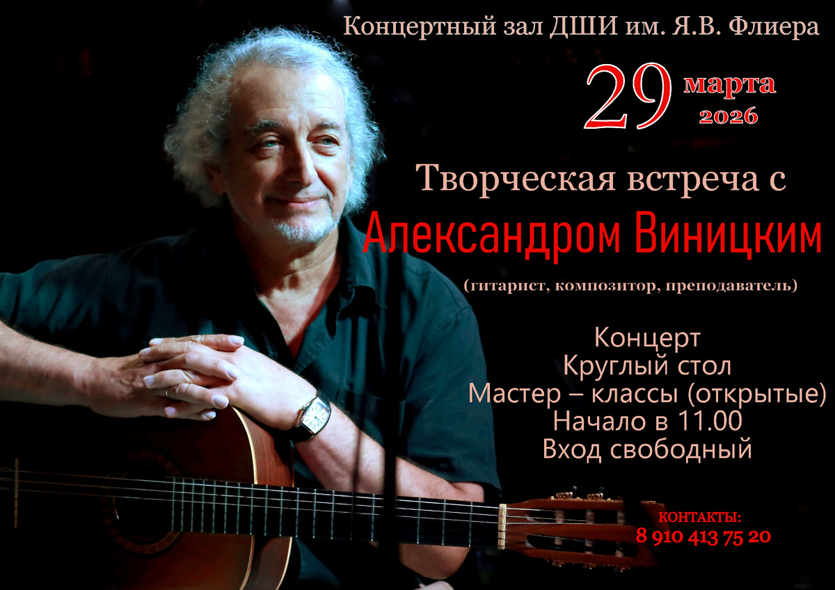 В Гитарную авторскую Школ приезжают педагоги и их ученики, заинтересованные в хороших результатах, многие становятся впоследствии дипломантами и лауреатами крупнейших конкурсов в номинации «Композиторское творчество», "Ансамбль гитаристов", «Сольное исполнительство», "Гитара в ансамбле". Руководством Школы и ее участниками создается и культивируется доброжелательный творческий настрой, который способствует наиболее полному раскрытию способностей учеников. В Гитарной Школе Александра Виницкого предусмотрена возможность получения педагогами удостоверений государственного образца о прохождении курсов КПК, а также вручение дипломов всем участникам. В Гитарной авторской Школе созданы все условия для эффективных и интересных занятий в любое время года. Полученные знания и приобретенный в ней опыт позволяют значительно расширить репертуар классического гитариста и найти дальнейшее практическое применение в учебном процессе, в преподавательской деятельности и в исполнительстве. Присоединяйтесь к Летним и Зимним авторским Гитарным Школам Александра Виницкого!Группа.