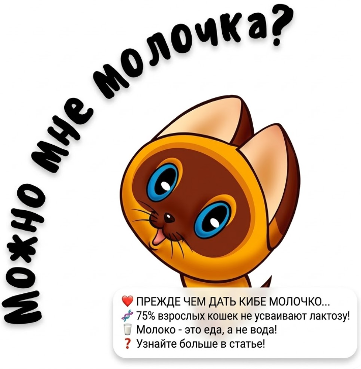 Разрушение детских иллюзий — процесс болезненный, но необходимый. 📉 Сначала мы узнаем, что Дед Мороз — это переодетый сосед, потом — что ежики носят яблоки на спинах только в мультфильмах (на самом деле они суровые хищники и предпочитают личинок 🐛), а теперь пришло время покуситься на святое. На блюдечко с молоком для котика. 🐈 Давайте разберем этот «белоснежный миф» с точки зрения биологии, здравого смысла и кошачьего благополучия. 🧐 Чтобы любая еда превратилась из «куска в тарелке» в «энергию для тыгыдыка», организм должен её расщепить. За это отвечают ферменты — маленькие химические курьеры. 🛠️ Для усвоения молока нужен специфический фермент — лактаза. Она занимается тем, что разрывает молочный сахар (лактозу) на простые составляющие, которые легко всасываются в кровь. 🩸 Как это работает у кошек: Когда взрослая кошка выпивает порцию молока, а лактазы в организме нет, происходит неприятное: нерасщепленная лактоза транзитом проходит в толстый кишечник. Там она начинает притягив