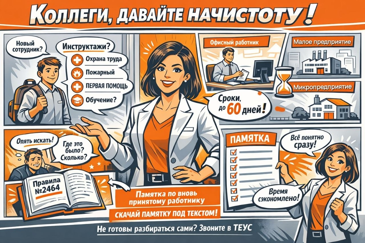! Сколько раз вы ловили себя на мысли: «Приняли нового сотрудника… Что с ним делать? Какие инструктажи, какое обучение, нужна ли стажировка? А если у нас микропредприятие? А если офисный работник?» Каждый раз одно и то же — лезешь в Правила № 2464, ищешь, вспоминаешь, перепроверяешь. А времени в обрез, ведь работник уже вышел, а оформление "виснет". Чтобы вы больше не гадали и не тратили часы на поиск, подготовили памятку по вновь принятому работнику. В ней всё разложено по полочкам — бери и действуй. Что внутри: 🔹 Два типа предприятий: обычное (более 15 человек) и микропредприятие (до 15 человек) — требования к ним отличаются, и важно не перепутать. 🔹 Две категории работников: рабочие профессии и офисные сотрудники (освобождённые от первичного инструктажа). 🔹 Для обычного предприятия: — пошаговый алгоритм для рабочего: вводный, первичный, обучение по программам (Б, ОПП, СИЗ, В), стажировка, стажировочный лист, приказ о допуске. — для офисного: вводный + обучение ОПП в течени