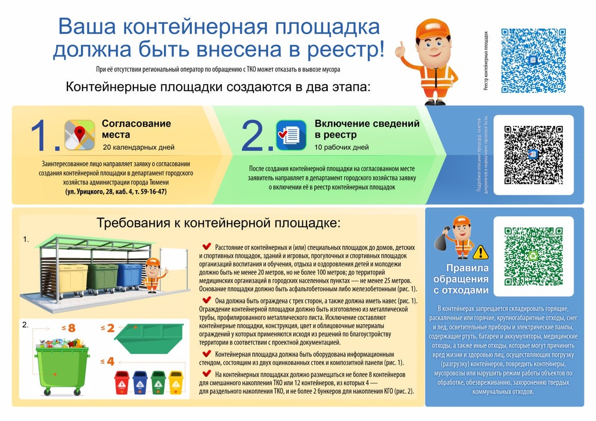 Размещение контейнерных площадок и процесс их регистрации подчиняется определённым правилам