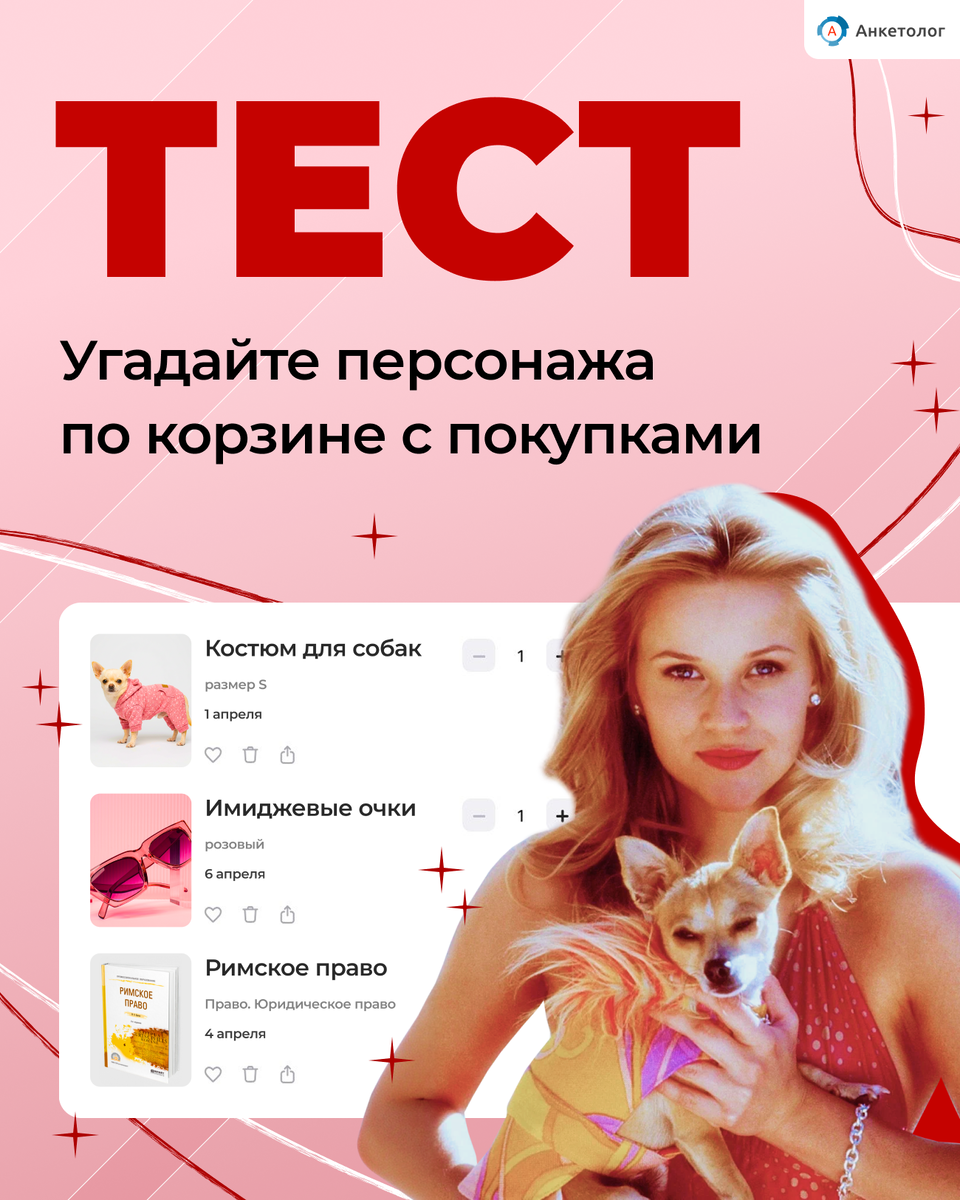 📎 Пройти тест: https://clck.ru/3SjWvj 💅 Представьте: в корзине на маркетплейсе — розовые очки, костюм для собак и книга по Римскому праву. Какому герою она могла бы принадлежать? 🎬 Мы зашифровали 10 персонажей из кино и сериалов с помощью товаров, которые они могли бы купить на Вайлдберис. 🎯 Ваша задача — посмотреть на корзину и угадать героя. ✨ Делитесь результатами теста в комментариях. #фильмы #кино #сериалы #персонаж #покупки #тест #тестонлайн #квиз