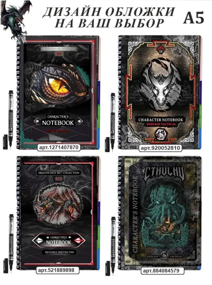 Лучшие приключениям с нашими бесконечными блокнотами 📖✨ - Почему они бесконечные? Наши блокноты имеют ламинированные листы, поэтому вы можете писать и стирать сколько угодно, и листы не порвутся. - Форматы на выбор: На выбор идут форматы А4 и А5 размера. - Стильные обложки: Мы предлагаем качественные деревянные обложки в черном и светлом цветах, а также яркие ламинированные картонные обложки с разнообразными дизайнами, каждый найдет что-то по своему вкусу! - Удобство для новичков: Каждый блокнот продуман до мелочей, чтобы вам было комфортно заполнять страницы для описания персонажа. Это особенно удобно для новичков, которые только начинают свой путь в мире DnD. 🎁 Бонус: В комплекте вы получите стираемый маркер и спиртовую салфетку для легкого удаления записей. Заказать блокноты и посмотреть весь ассортимент вы можете в наших магазиах на маркетплексах: Озон https://clck.ru/3PjUn8 ВБ: https://www.wildberries.ru/seller/86371 Яндекс Маркет: https://clck.ru/3PjUt9