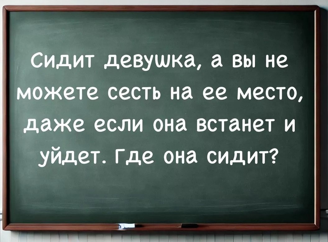 👀 Она на самом деле очень простая. Представьте себе: сидит человек, а вы никак не можете занять его место, даже если он встанет и уйдет. Так где же он сидит?