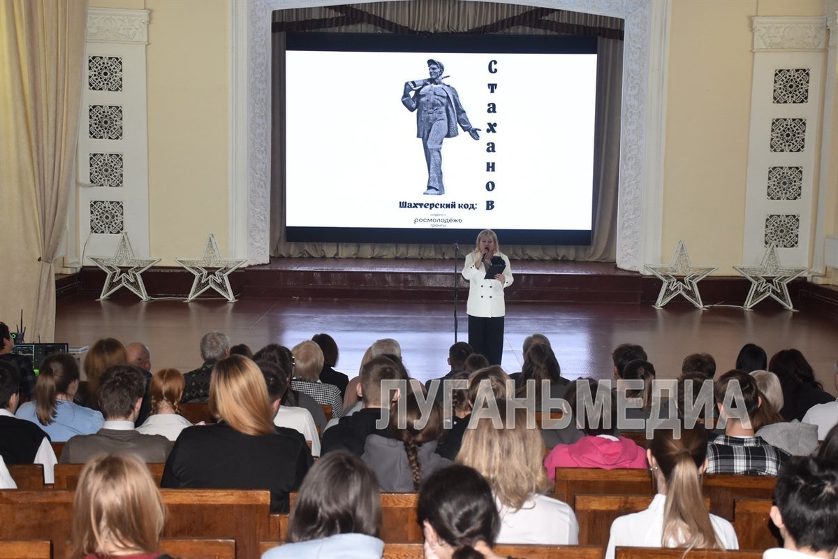 Торжественное открытие культурно-образовательного проекта «Шахтерский код: Стаханов» состоялось в стахановском Центре детского и юношеского творчества. Проект, главная цель которого заключается в укреплении исторических знаний молодежи о родном крае, в частности, о стахановском движении, стал победителем второго сезона конкурса «Росмолодежь. Гранты» 2025 года. Аплодисментами участники встречи – учащаяся молодежь ‒ приветствовали ветеранов шахтерского труда Николая Ветрова, Владимира Мартовицкого и Александра Филиппова. К присутствующим обратились Сергей Ковалев ‒ заместитель председателя Совета городского округа, Евгений Шумейко ‒ депутат Совета городского округа, председатель городского совета ветеранов и Елена Кострикина ‒ заместитель начальника территориального управления образования по Стаханову, Первомайску, Брянке, Кировску МОН ЛНР. Неподдельный интерес у зрителей вызвало видеообращение ветерана шахтерского труда Евгения Дорохина, сейчас проживающего в Сочи. В 70‒80-е годы он был