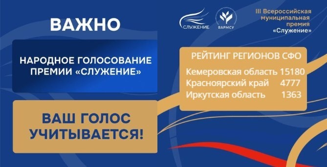 Номинантов премии «Служение» (организатор ВАРМСУ) в Сибирском федеральном округе поддержали почти 25 тысяч человек. По числу голосов Красноярский край на втором месте в округе. Наши проекты в топ-110, в финале народного голосования: 🔹 Норильск — вторую жизнь получила башня 1951 года: теперь это детский центр, музей и смотровая площадка. Автор — Елена Лебедева. https://pos.gosuslugi.ru/lkp/slujenie-2026/9/ 🔹 Красноярск — многодетные семьи сами развивают город: благоустраивают катки, проводят экскурсии, запускают инициативы. Автор — Ольга Качанова. https://pos.gosuslugi.ru/lkp/slujenie-2026/220/ 🔹 Норильск — создана интерактивная карта развития города: 387 объектов, 120 млрд рублей инвестиций — всё открыто и доступно. Автор — Максим Миронов. https://pos.gosuslugi.ru/lkp/slujenie-2026/69/ Чтобы они стали победителями — нужна наша активность! 📈 Чем выше вовлечённость — тем больше шансов, что наши проекты будут замечены и поддержаны на федеральном уровне. #ГолосСлужения #Краснояр