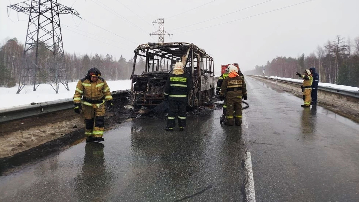 Автобус с вахтовиками сгорел на трассе Нижневартовск — Стрежевой: люди успели выбежать до того, как МАЗ превратился в пепел
